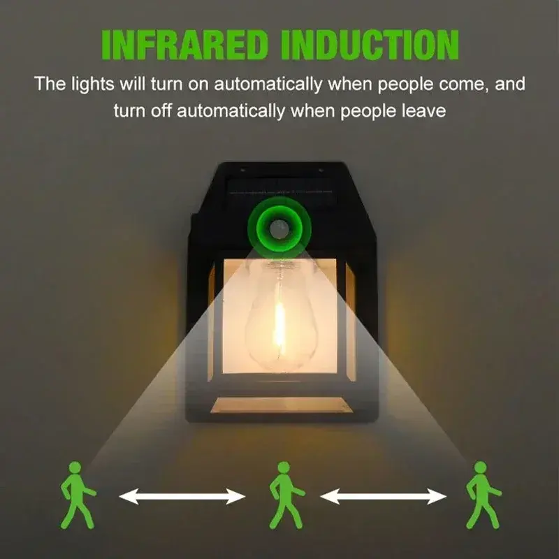 Appliques murales solaires pour l'extérieur Lampe solaire à filament de tungstène à énergie solaire de 10 lumens Éclairage chaud extérieur étanche