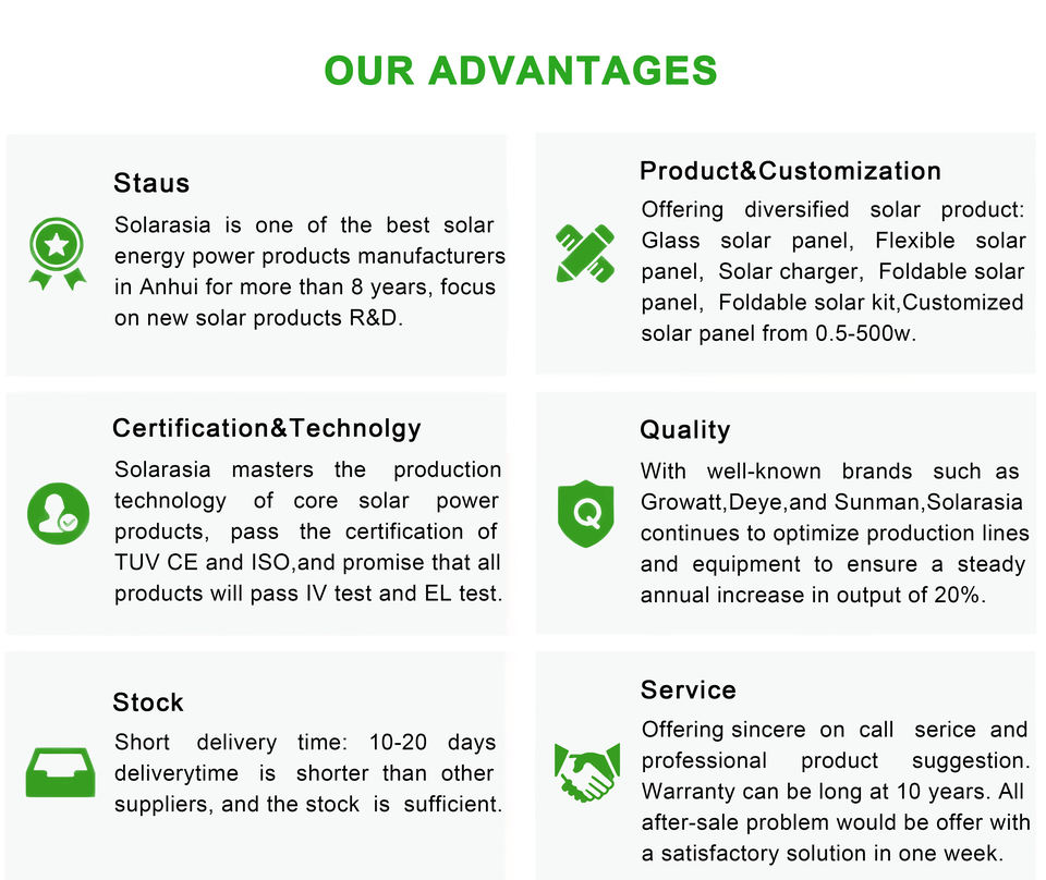 Câbles de sortie:TUV 1*4.0mm2 (+): 250mm , (-): 150mm ou longueur adaptée aux besoins du client