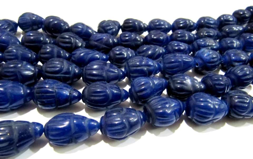 Vendu par 6 perles en vrac Meilleure qualité de saphir bleu teint sculpté à la main Designer Taille 10x14mm à 14x20mm Tear Drop Beads
