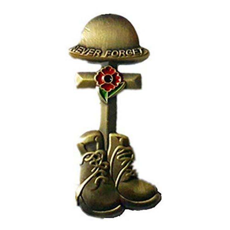 Soldat seul Casque Bottes Rouge Coquelicot Émail Insigne Broche Couleur Or