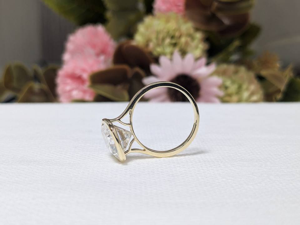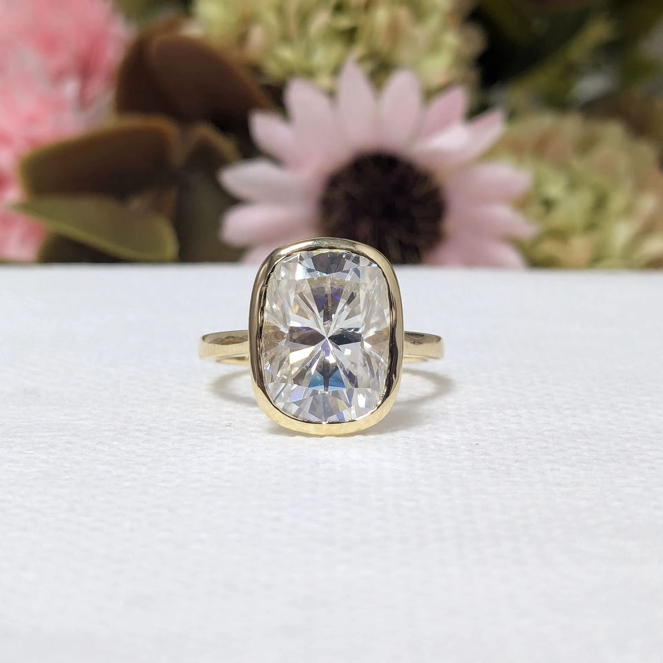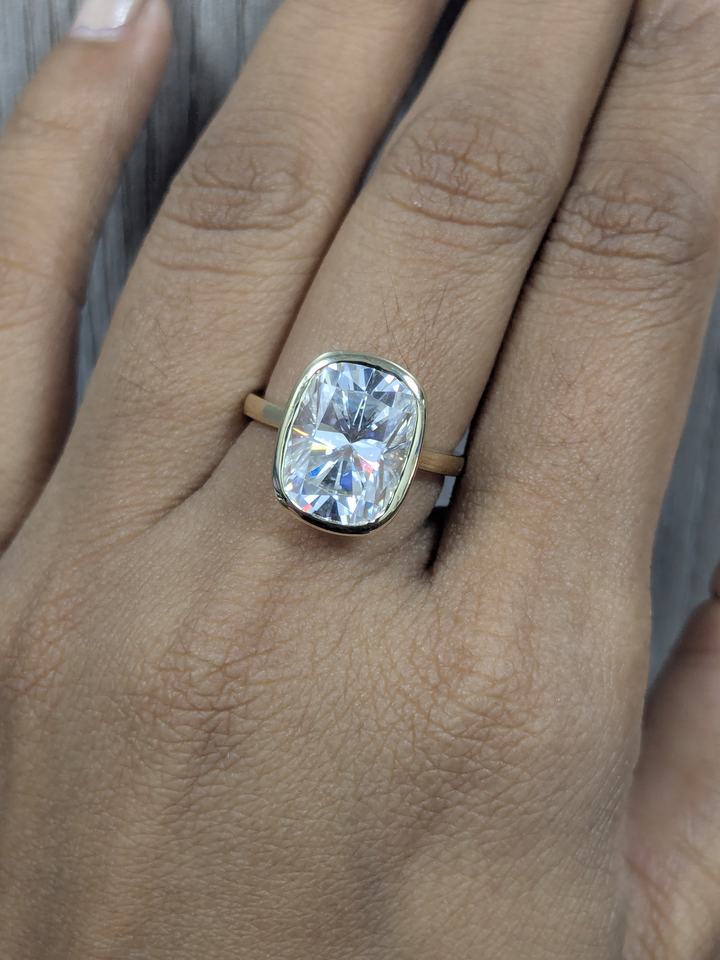 Bague solitaire en or blanc/jaune 10K/14K massif, diamant de laboratoire taille coussin de 3,75 carats serti clos, bague de fiançailles, cadeau de la Saint-Valentin