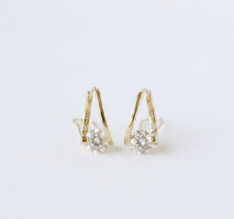 Boucles d'oreilles créoles minimalistes en or massif 14 carats avec diamant de laboratoire en forme de V, solitaires, à fermoir levier, pour femme