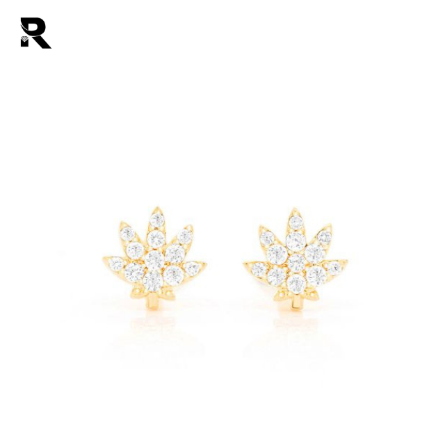 Boucles d'oreilles en or jaune massif 14K avec fleur en diamant, nouveau Design, petits clous à porter quotidiennement, fabricant de bijoux fins