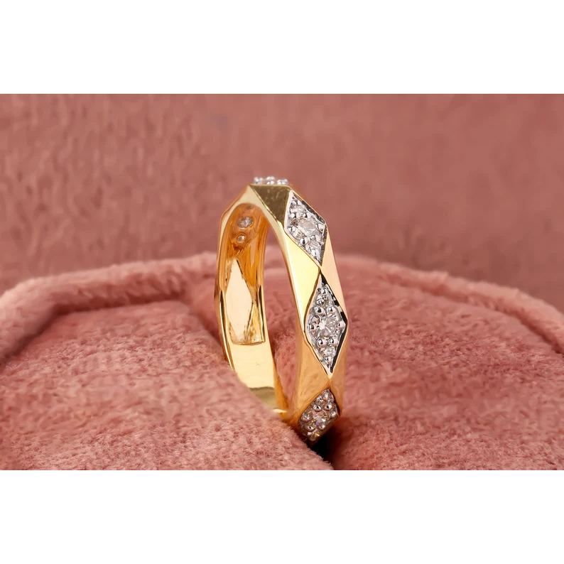 Bague de mariage en or jaune, moissanite ronde incolore, bande élégante pour toutes les occasions