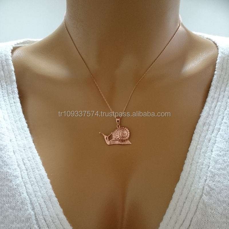 Solide 14K jaune blanc or Rose escargot pendentif collier élégant Animal bijoux femmes mariage fête fiançailles à la main dinde