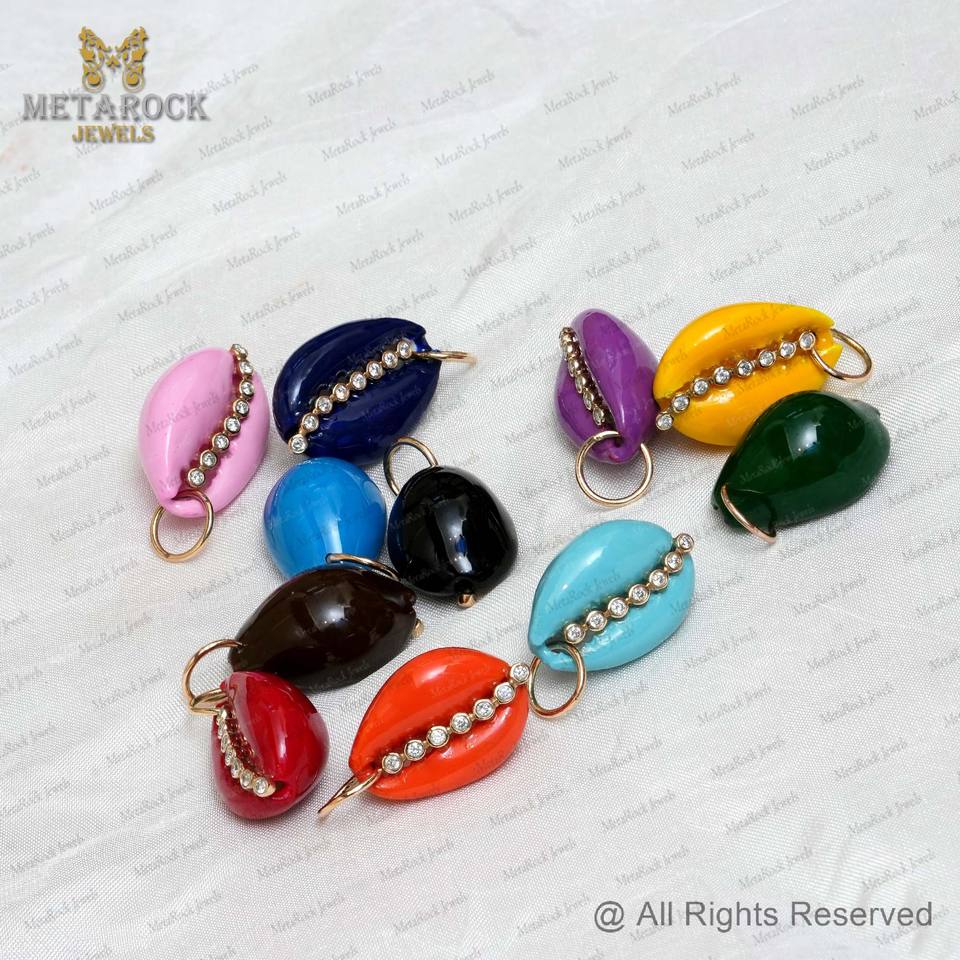 Solide 14k jaune or émail coquille pendentif pavé diamant coquille bijoux unisexe cadeau fait à la main nouveau concepteur pendentif cauri coquille