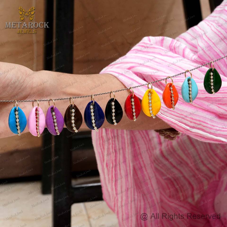 Solide 14k jaune or émail coquille pendentif pavé diamant coquille bijoux unisexe cadeau fait à la main nouveau concepteur pendentif cauri coquille