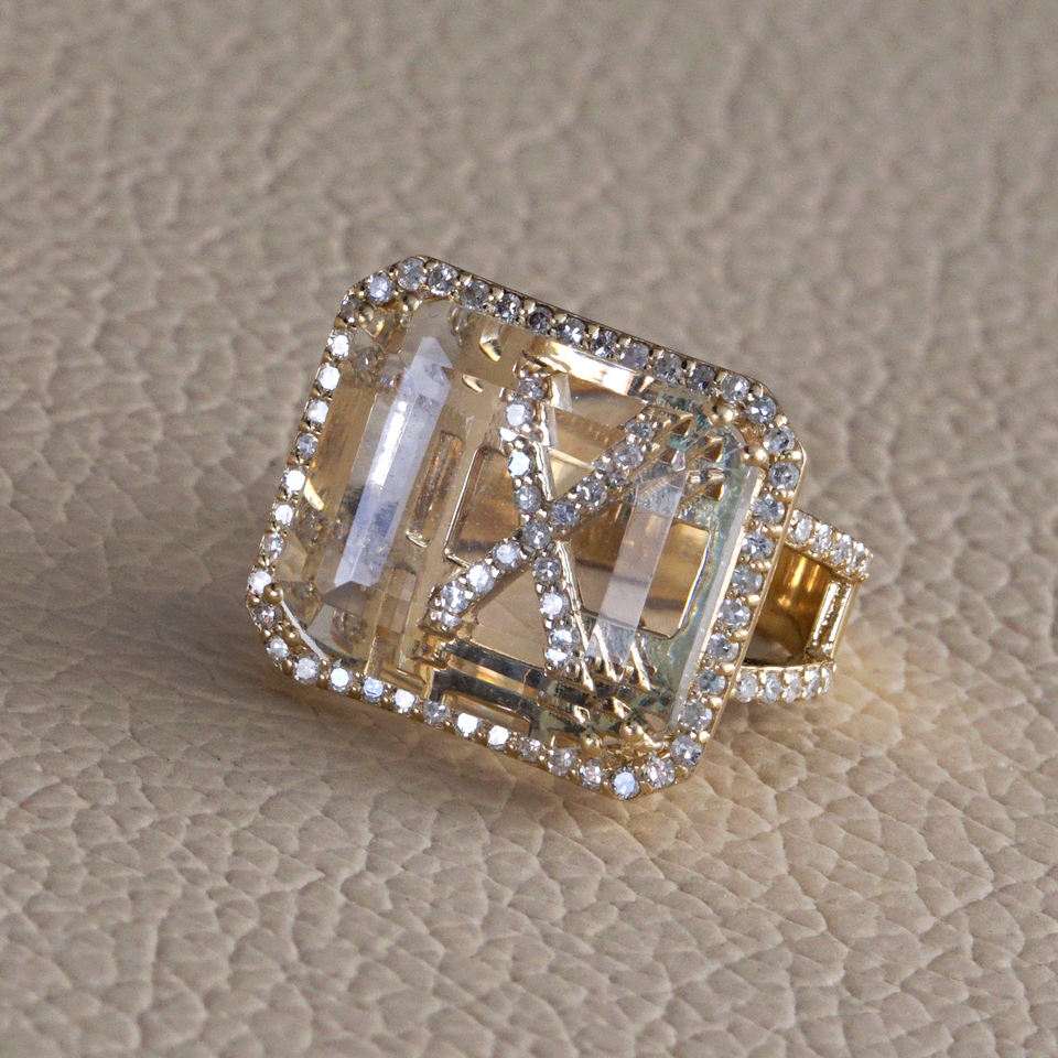 Nom de l'anneau:Bague initiale en or 14k avec diamant