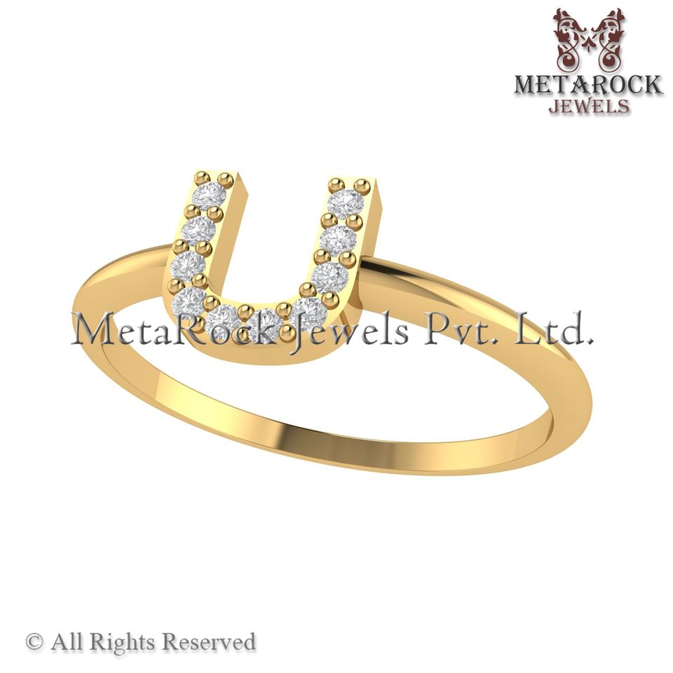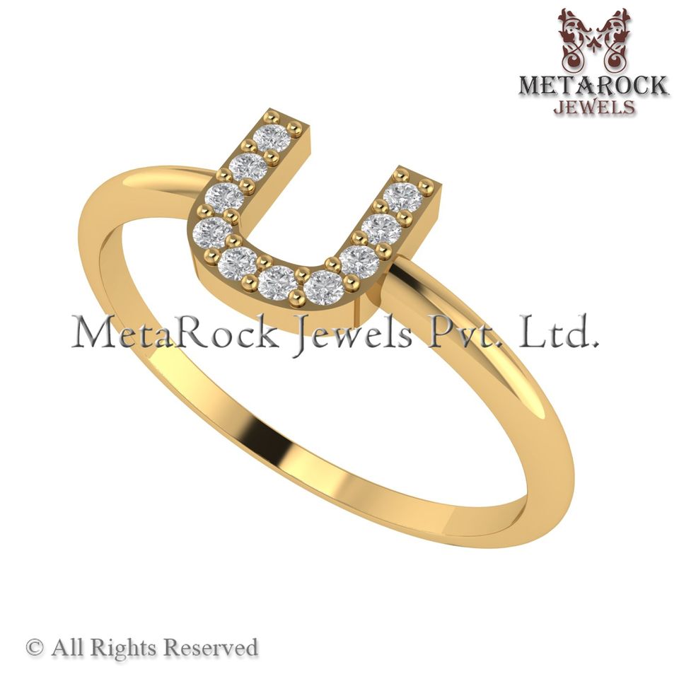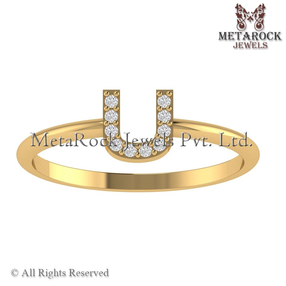 Bague initiale U en or jaune massif 14 carats Pave Diamond Jewelry Fait à la main A à Z Minimalist Letters Ring Gold Diamond Jewelry U Ring
