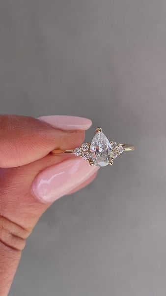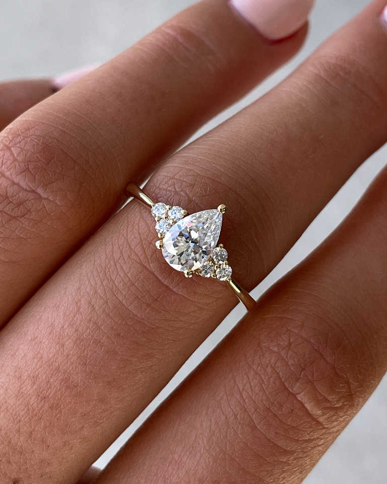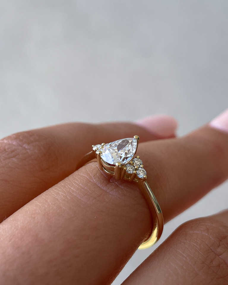 Bijoux en diamants de laboratoire certifiés en or jaune massif 18 carats Designer de luxe à la mode Ensemble de broches taillées en poire Bagues pour femmes à 3 griffes
