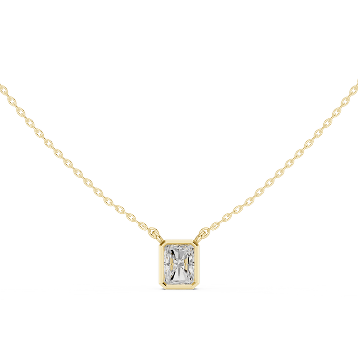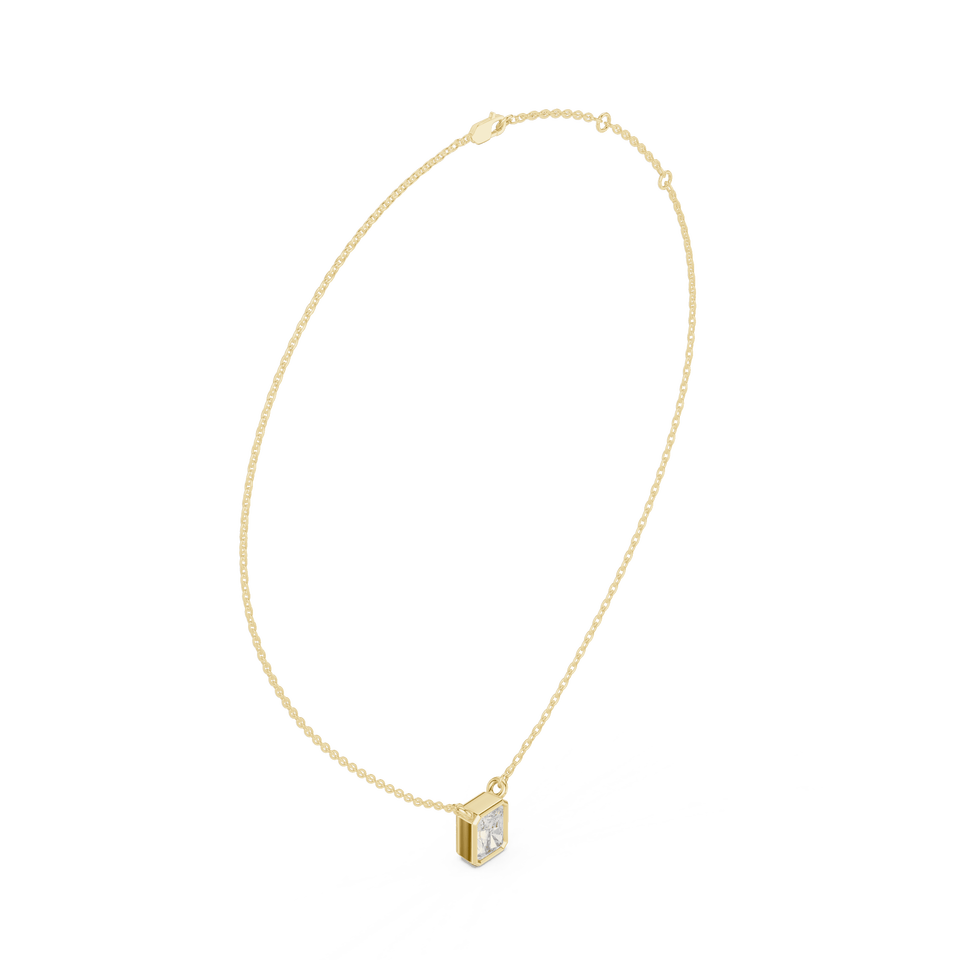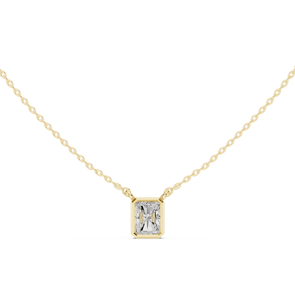 Collier en or jaune massif 18 carats avec diamant radiant serti clos, pendentif élégant fait main avec diamant flottant, bijoux fins, design personnalisé