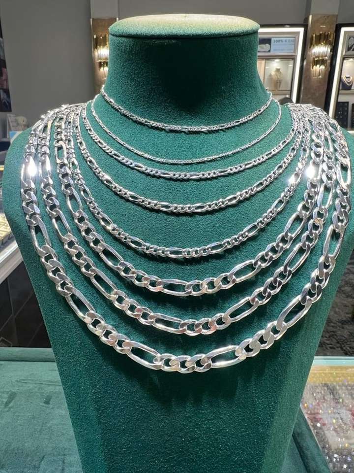 Solid 925 Genuine Sterling Silver Figaro Link Chain for Men and Women