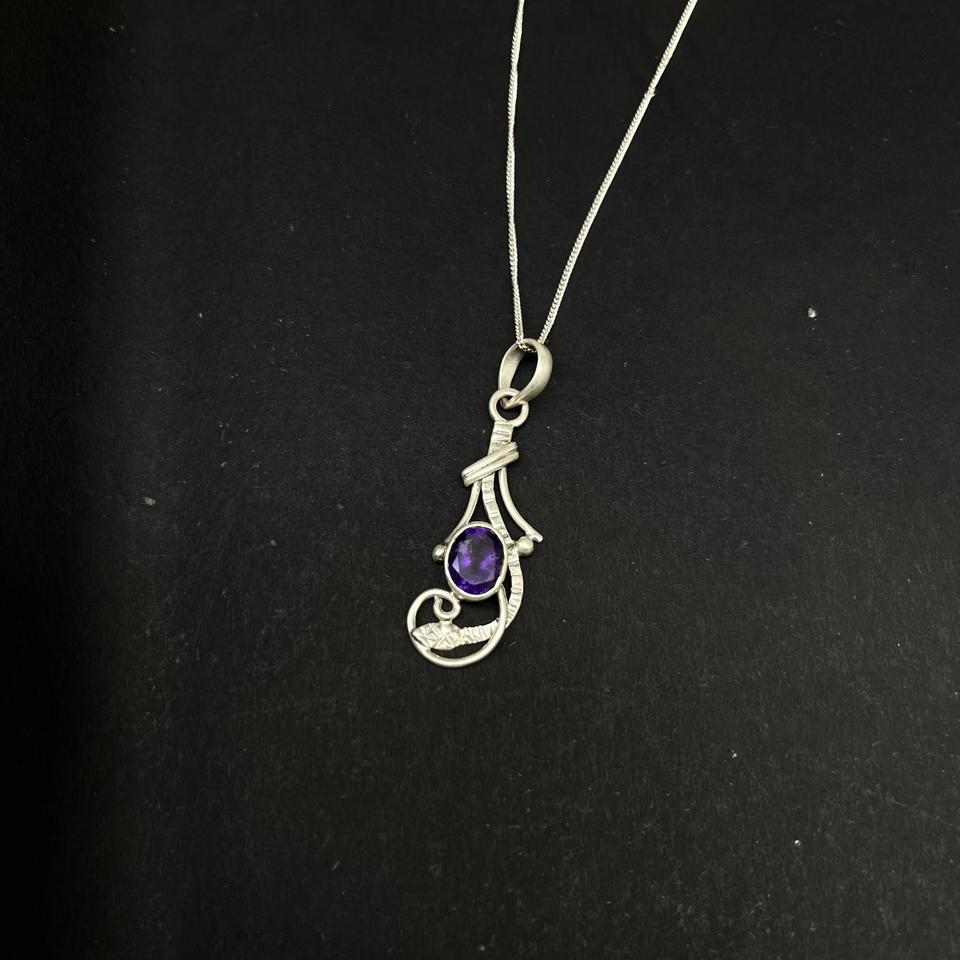 Collier pendentif Boho en argent sterling massif 925 avec pierre précieuse améthyste violette fait à la main coupe ovale breloques pour femmes