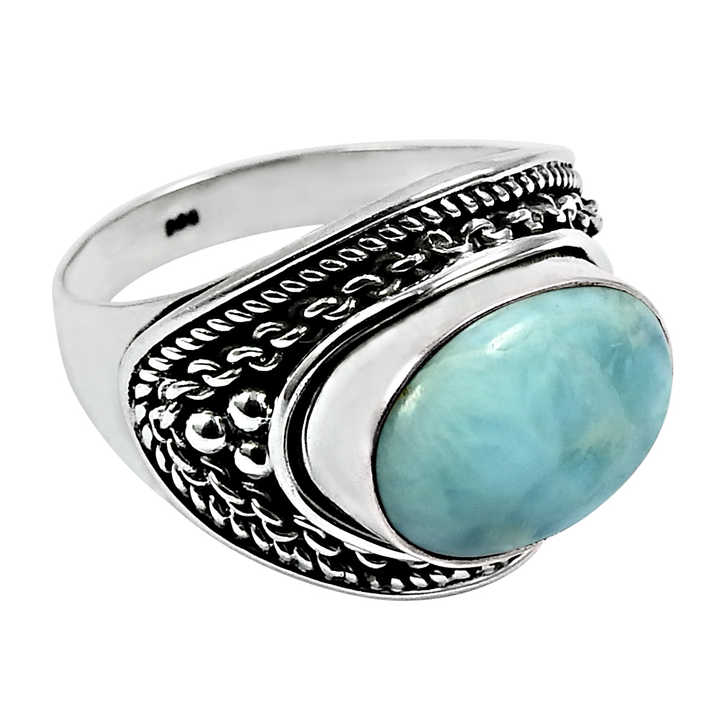 Bague de réglage de lunette de Style ethnique en argent Sterling massif 925 avec pierre précieuse de Larimar naturelle bijoux bohèmes faits à la main pour femmes fille
