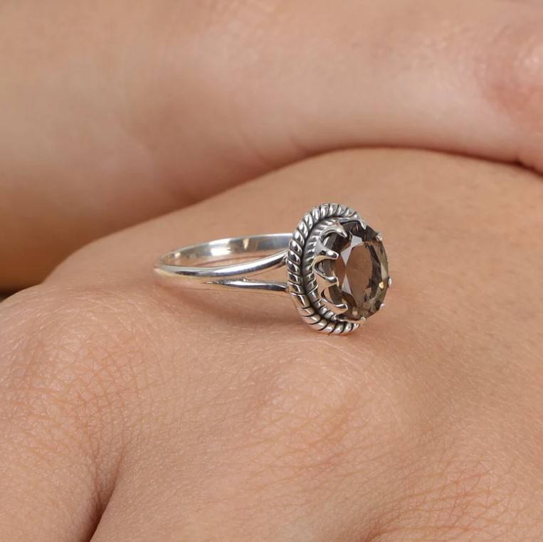 Nom du produit:Bague en argent à quartz fumé à facettes