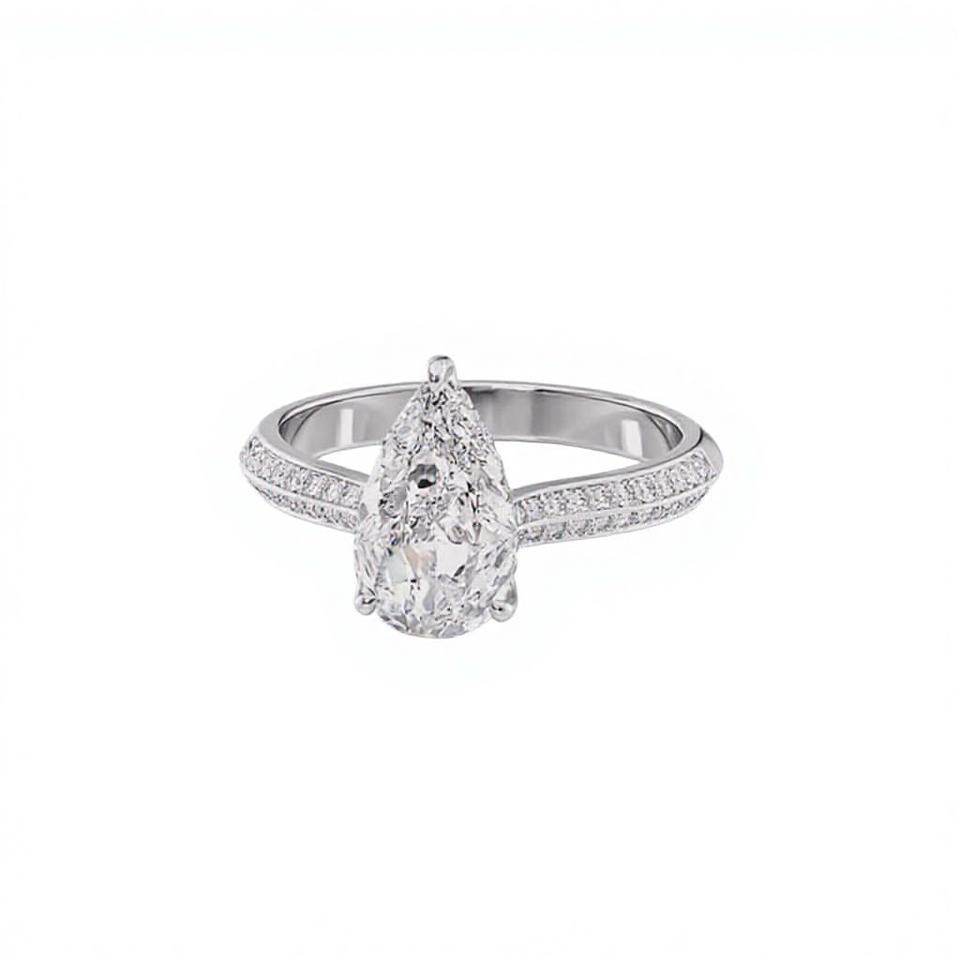 Bague de Mariage en Argent Sterling 925 Massif avec Diamant de Laboratoire Certifié IGI Taille Poire, Plaqué Rhodium, Sertissage à Griffes, Style Ethnique