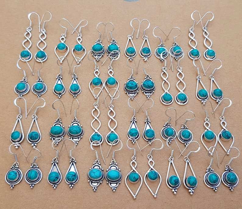 Solide 925 Sterling Silver Natural Turquoise Gemstone Bahamian Design Lunette Réglage Boucle D'oreille En Gros En Vrac Lot Fabrique