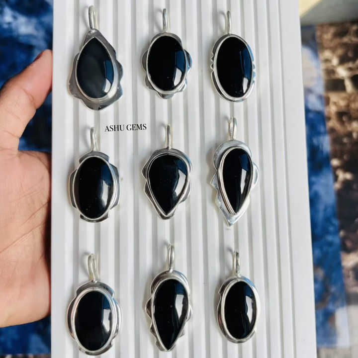 Product name:Solid 925 Sterling Silver Black Onyx Gemstone Pendants