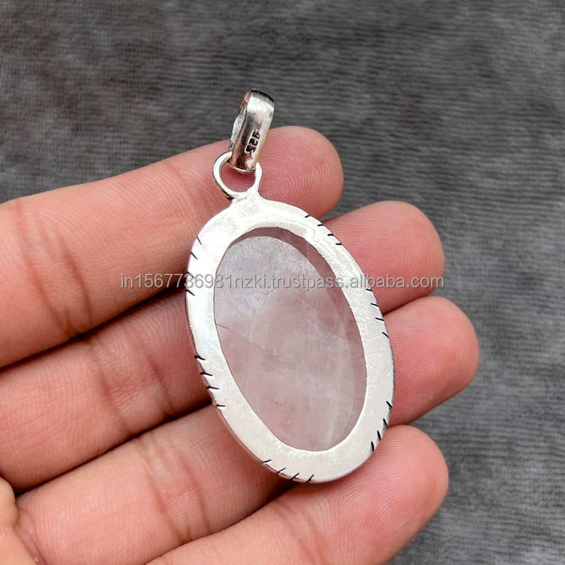 Pendentif en argent sterling 925 avec quartz rose