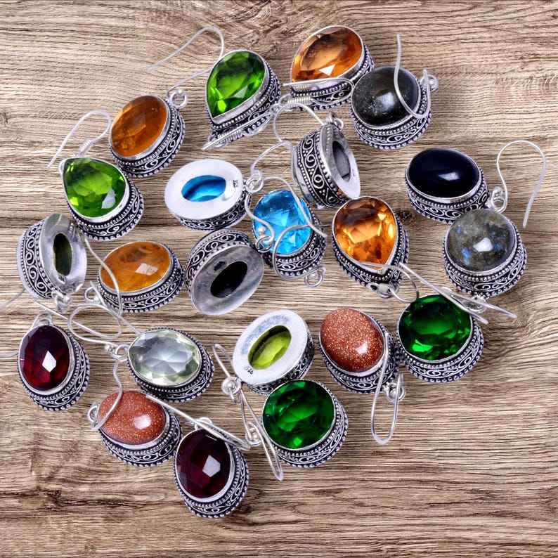 Boucles d'oreilles en argent sterling massif 925 sertissage de lunette multi-pierres précieuses naturelles Design bahaméen Fabrication de lots en vrac en gros