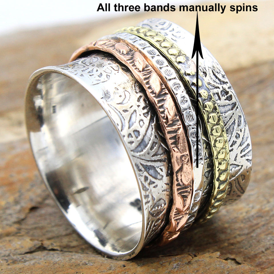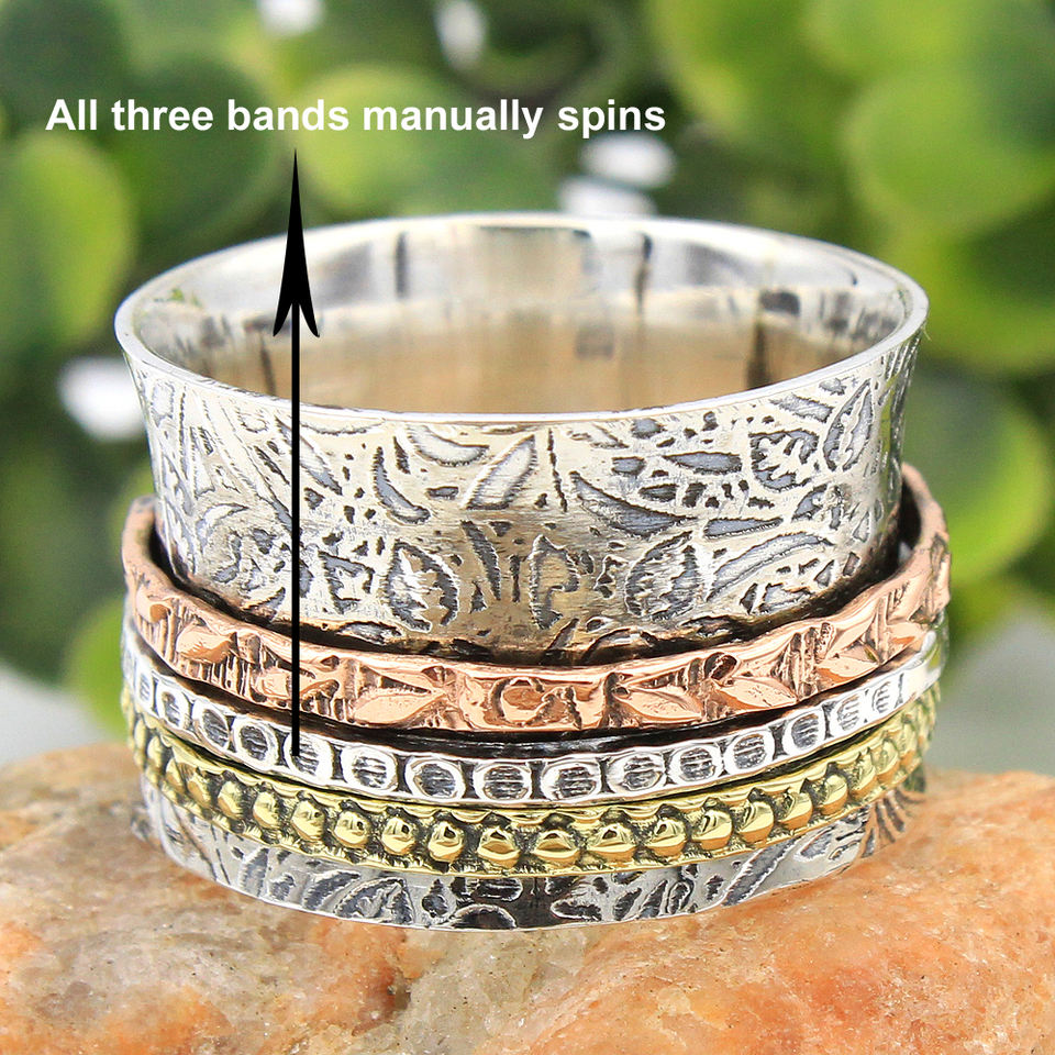 Solide 925 argent sterling spinner bande designer fait à la main spinner bande trois tons anneau cadeau pour elle
