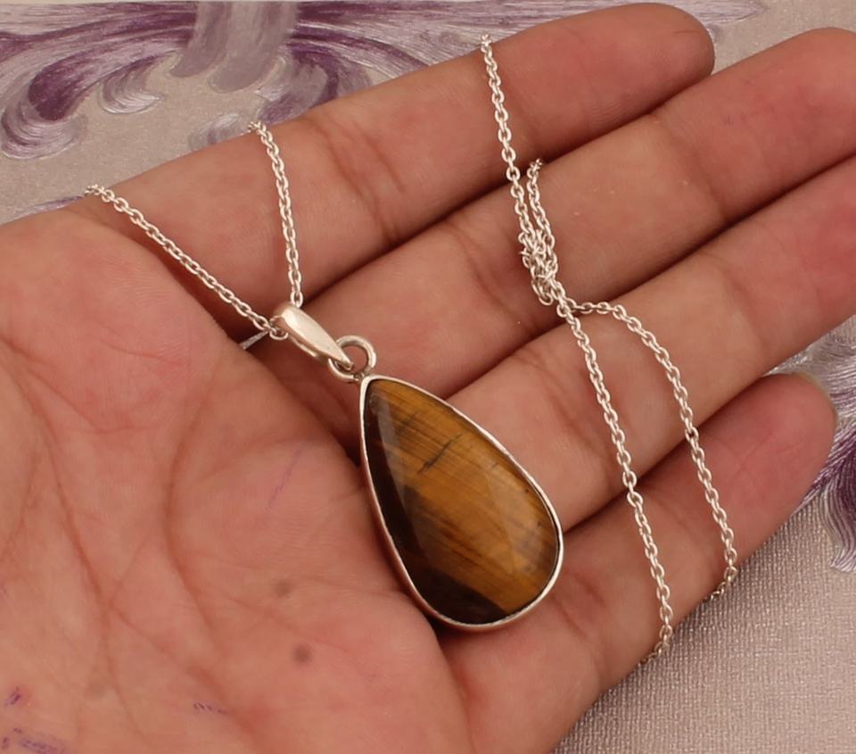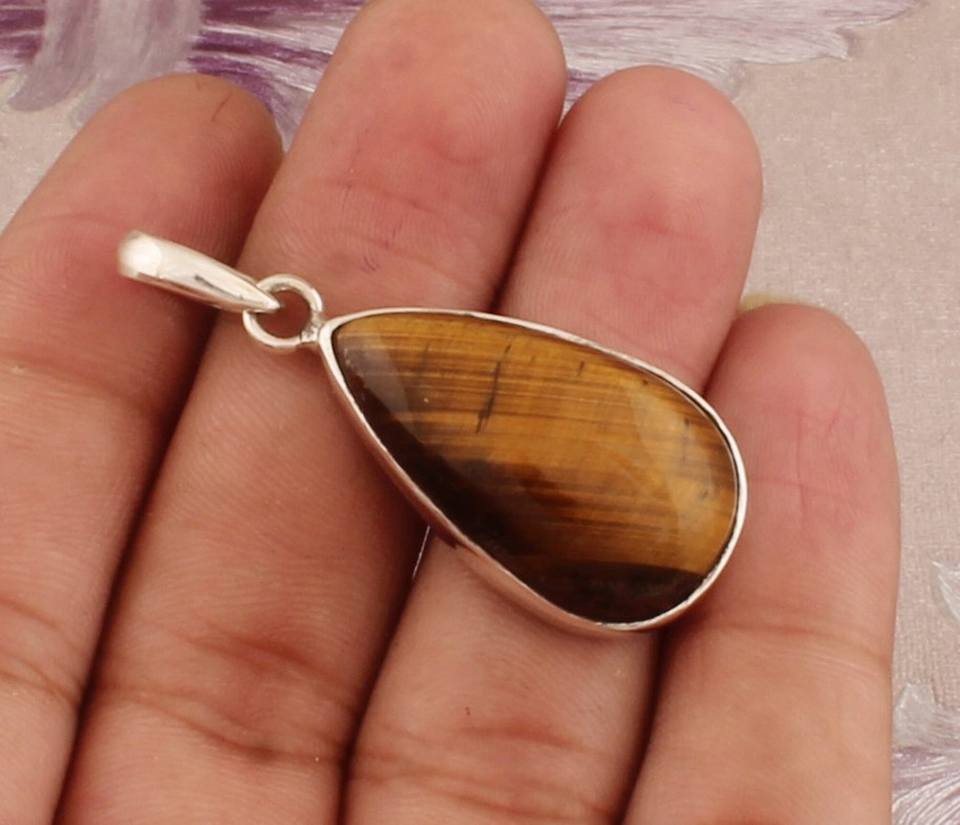 Product name:Natural Yellow Tiger Eye Gemstone Silver Handmade Pendant