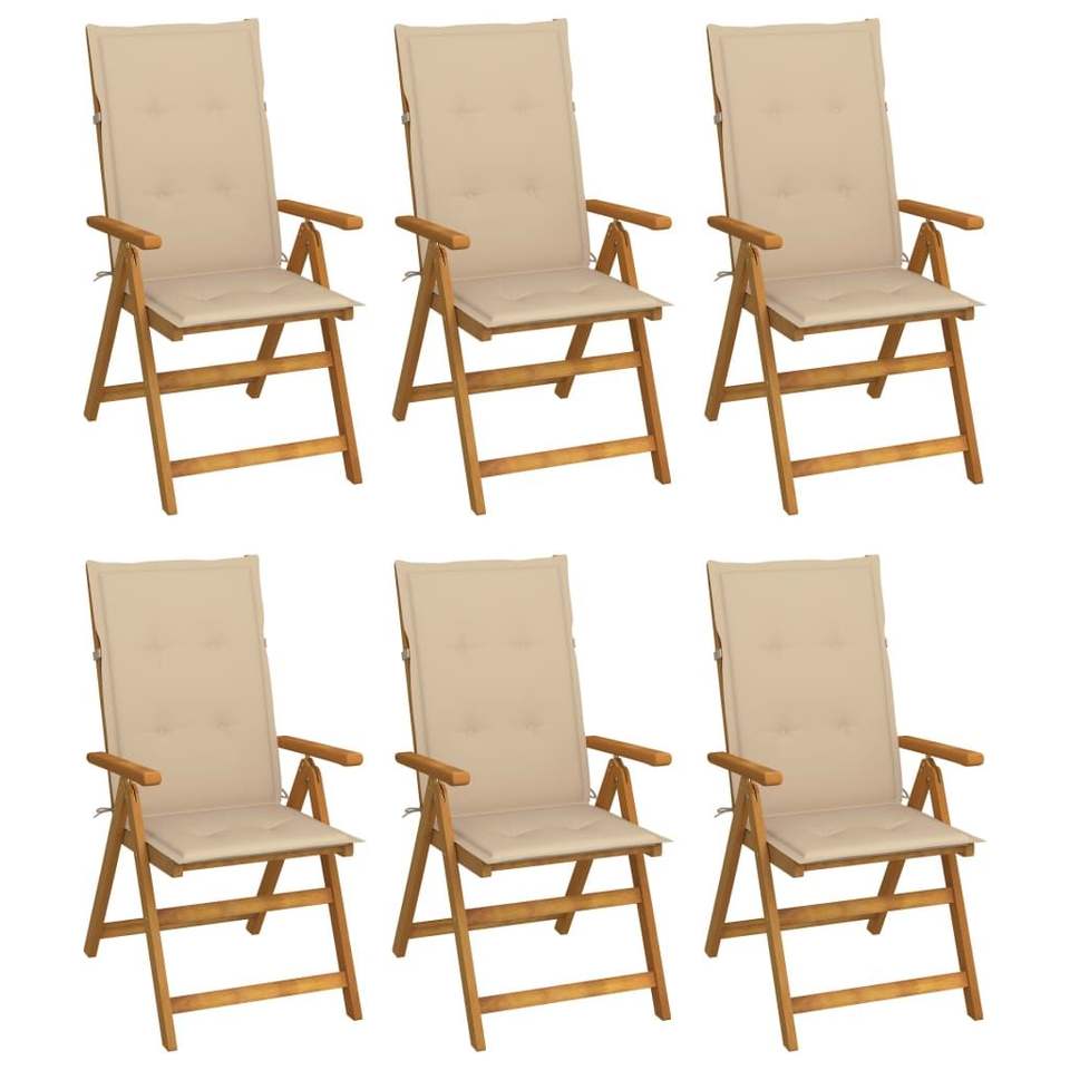 Solid Acacia Wood Folding Patio Chairs with Cushions 6-Piece Set