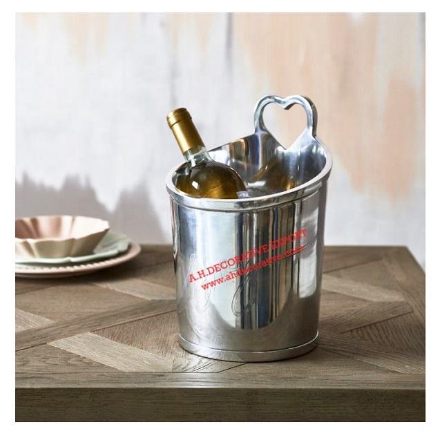 Solid Aluminum Silver Plated Ice Bucket with Handle for Bar Party and Nights Clubs Metal Wine Cooler Tub