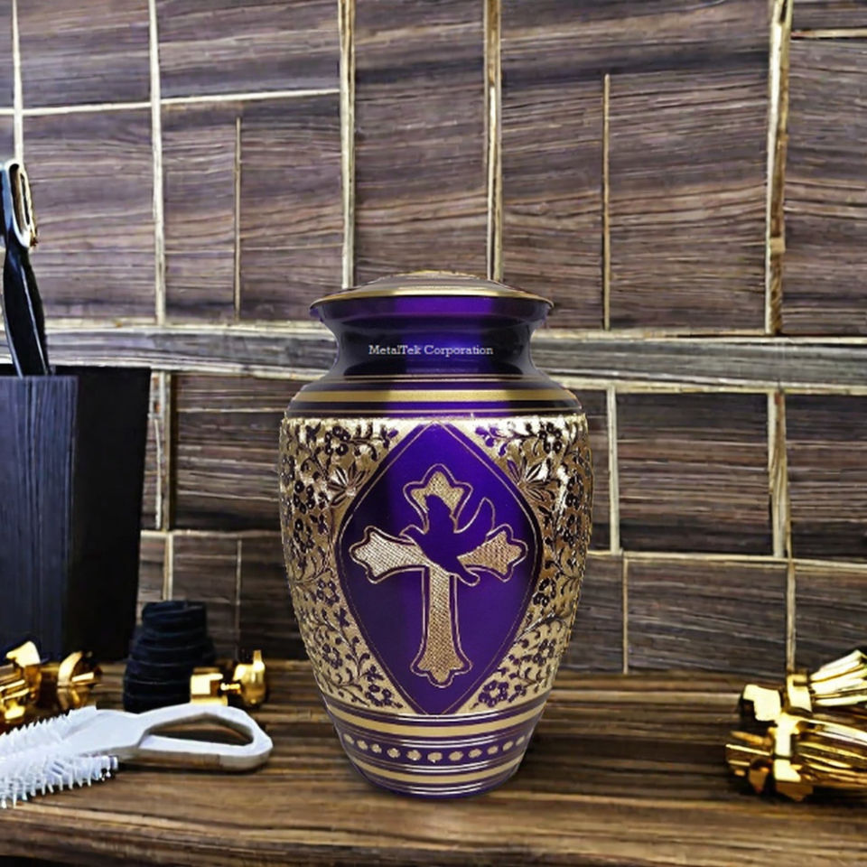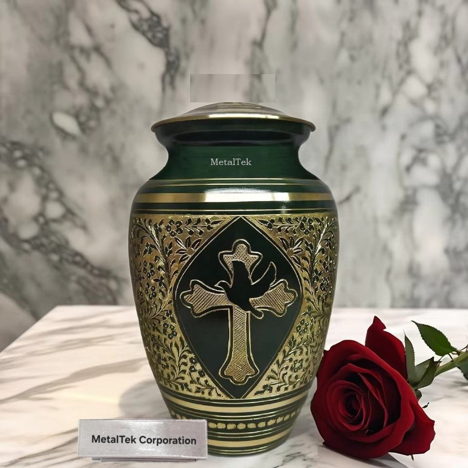 Urne funéraire en laiton pur avec gravure d'une croix et d'un oiseau, artisanale, en métal, souvenir, pot à cendres pour adulte, animal de compagnie, funérailles, personnalisable
