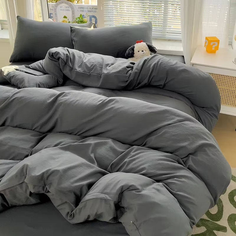 Linge de lit solide coton ensemble de literie 4 pièces avec drap housse de couette taies d'oreiller Couple simple drap de lit Couple simple taille jumelle