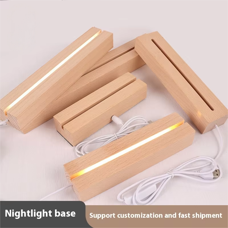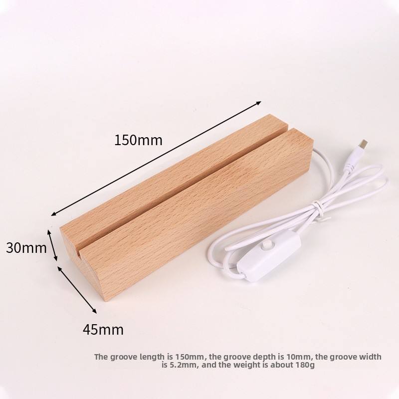 Socle Lumineux LED en Bois de Hêtre Massif avec Bande Rectangulaire, Base de Lumière en Bois de Hêtre pour Gravure Acrylique DIY de Noël
