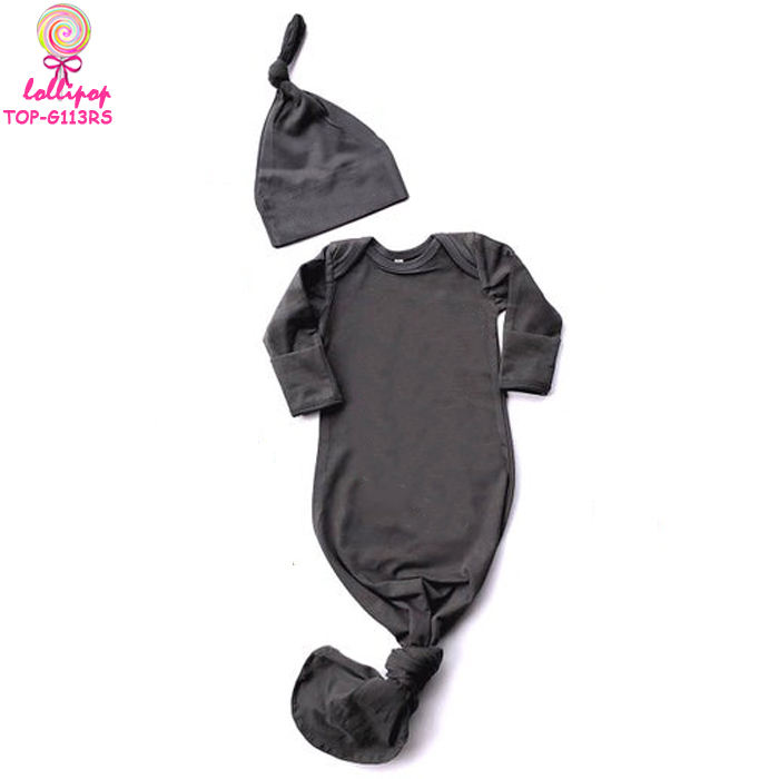 Name:Blank Newborn Knotted Baby Gown Long Sleeper And Top Knot Baby Hat