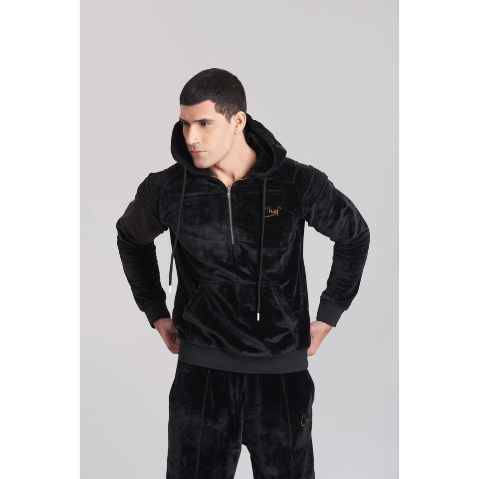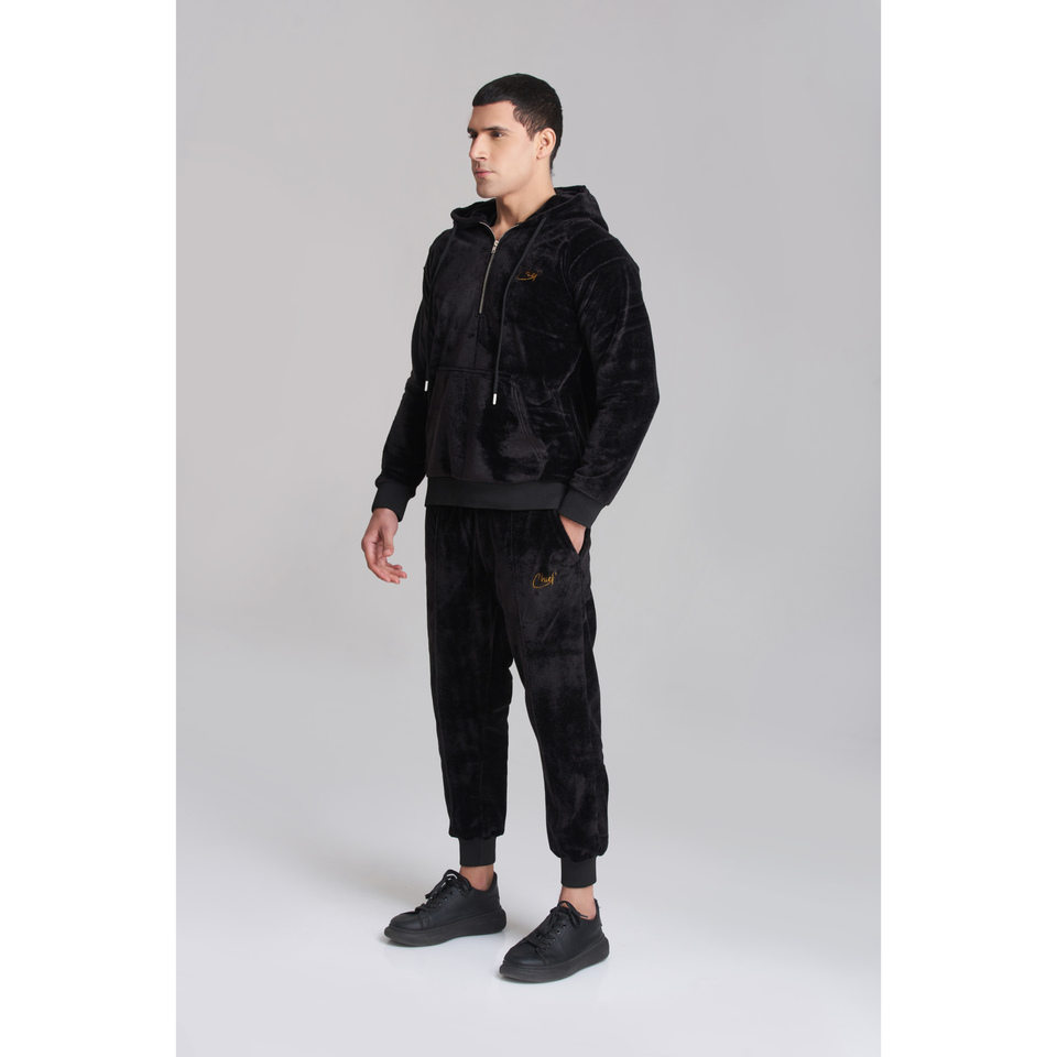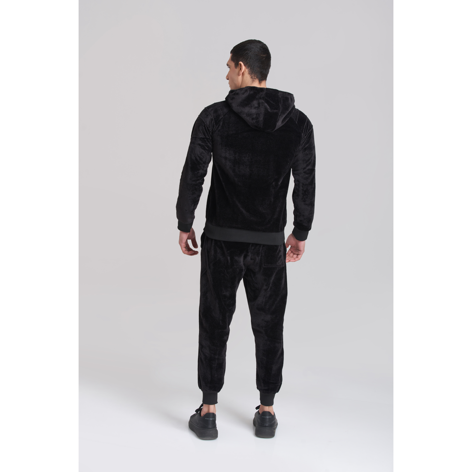 Men's Solid Black Velvet Hoody TrackSuit