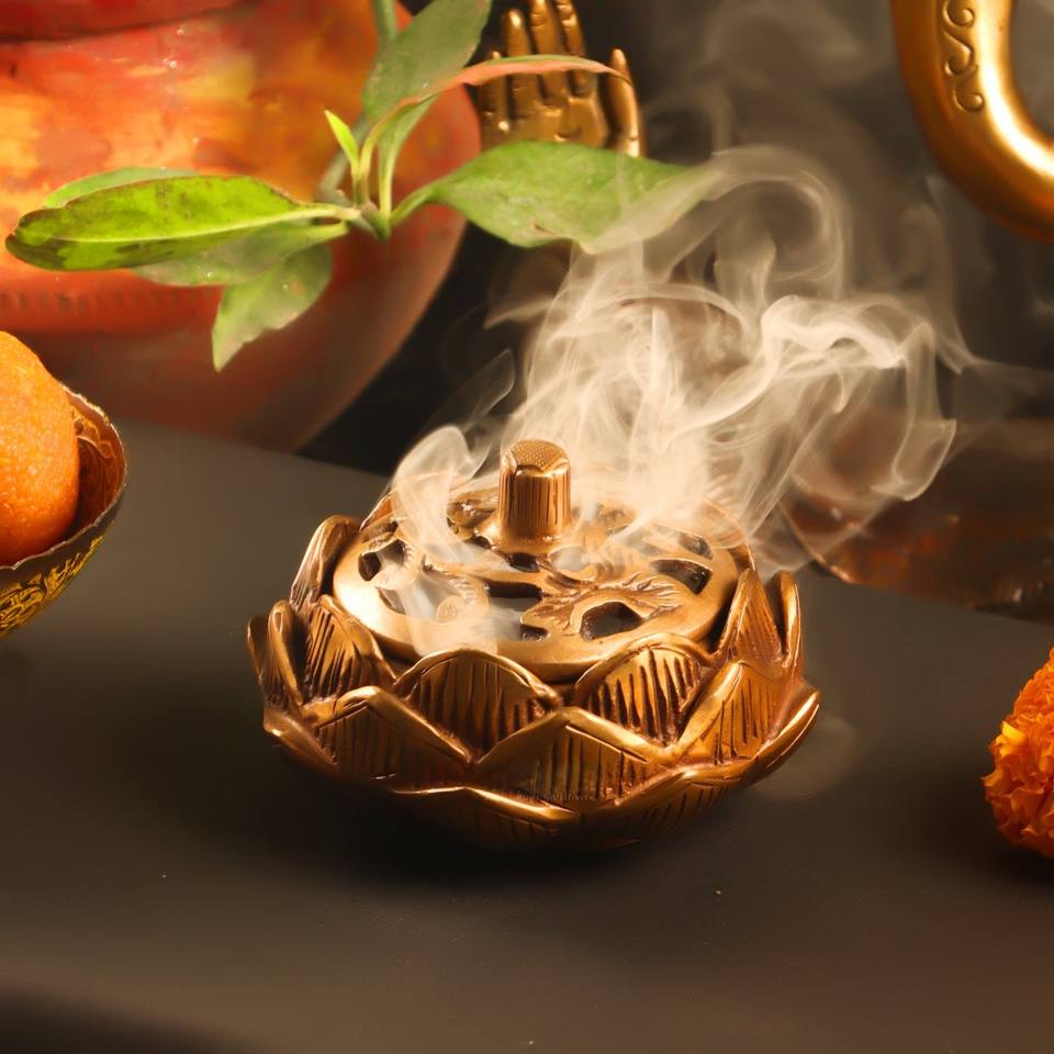 Brûleur d'encens en laiton massif, écologique et durable, avec couvercle, pour usage religieux dans les temples et les salles de prière à domicile