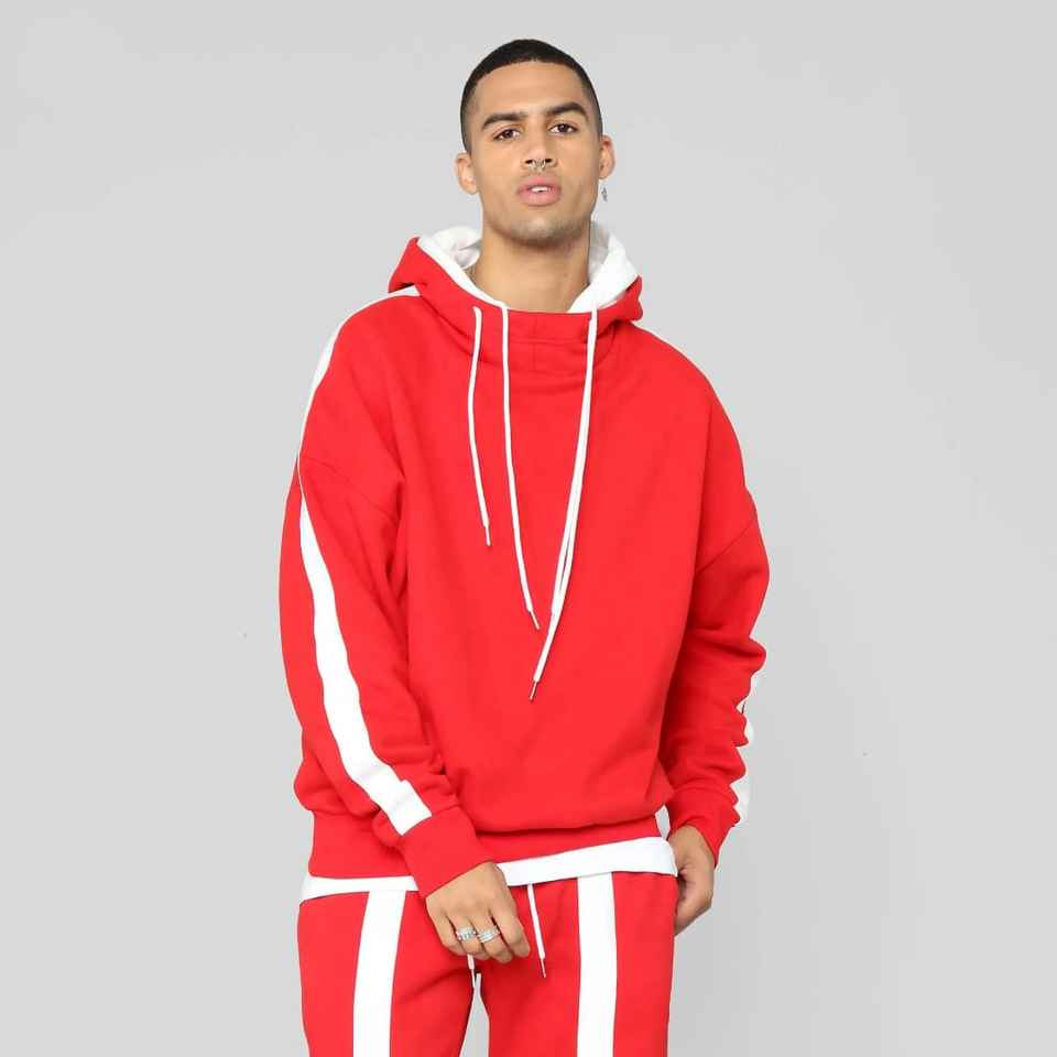 Sweat-shirts à capuche unis, logo personnalisé, poids lourd, surdimensionné, épaules tombantes, sweat-shirts à capuche rouges pour hommes, streetwear