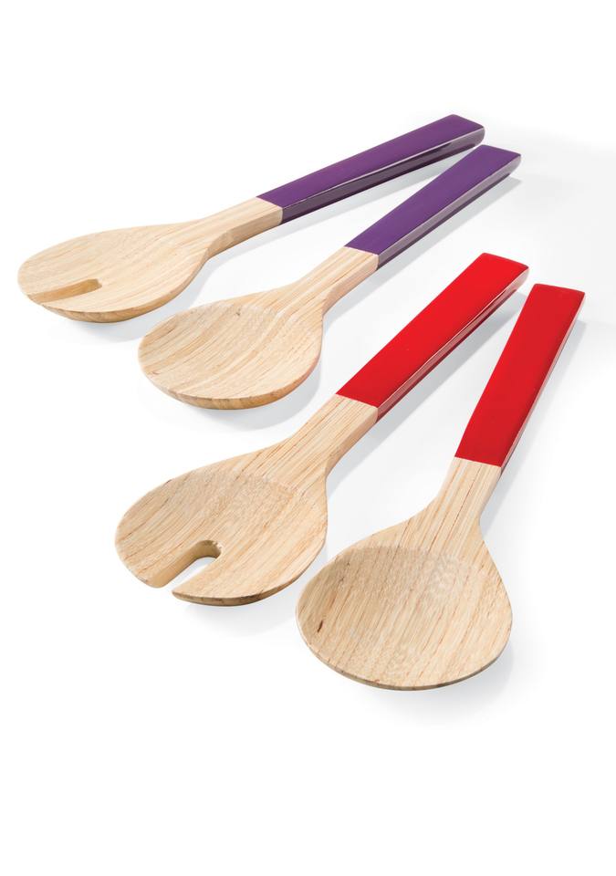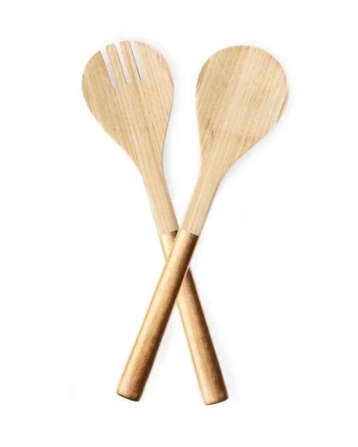 Fourchette de cuillère de service à salade en bambou de bloc de couleur unie taille personnalisée nouveaux ustensiles jetables filés bols de service axés sur la sécurité