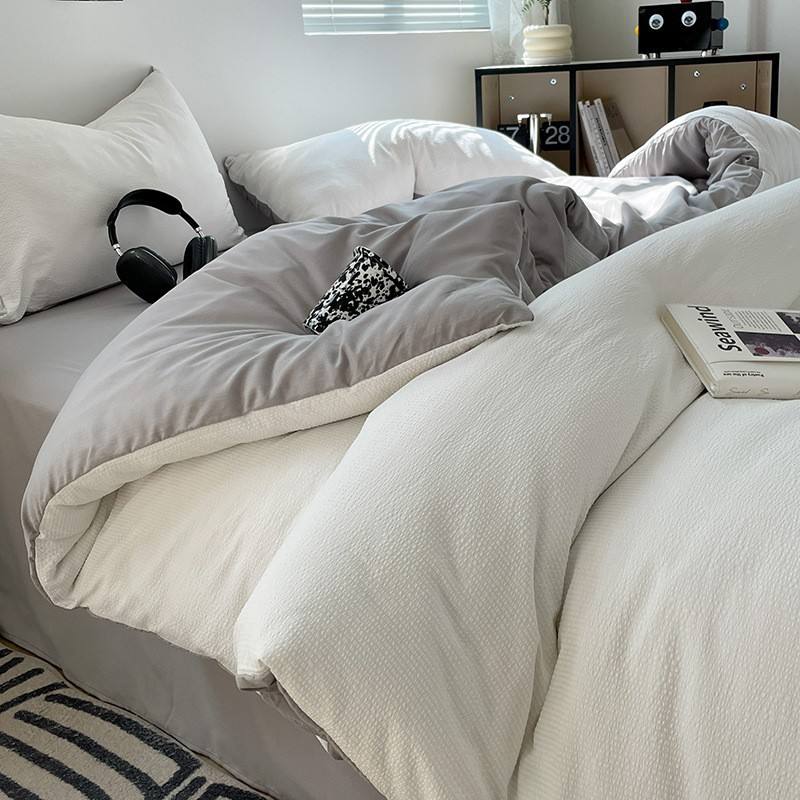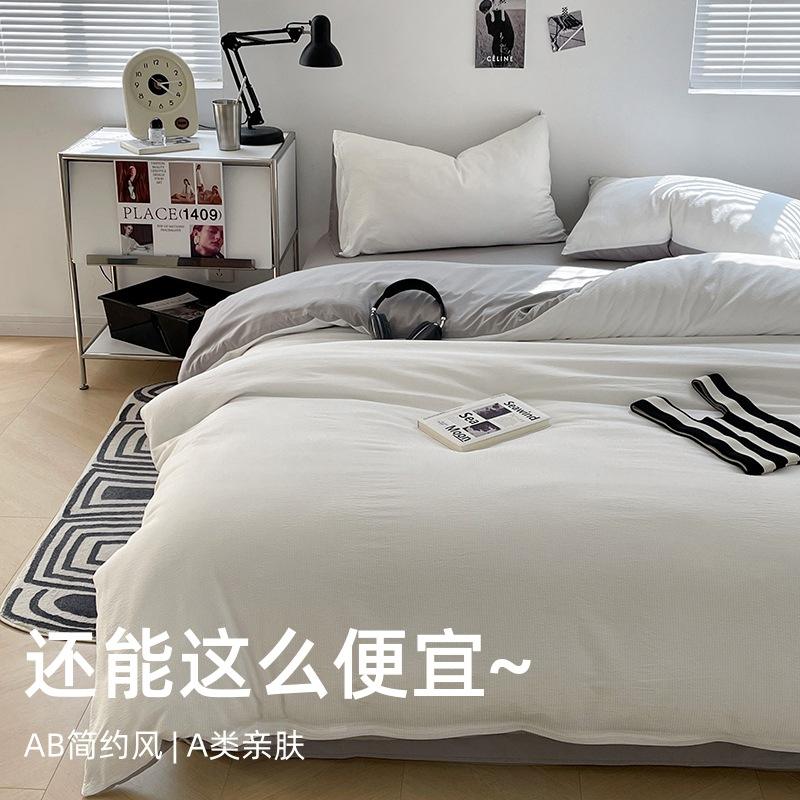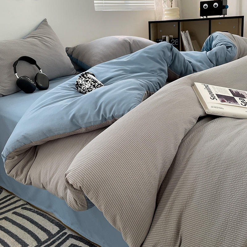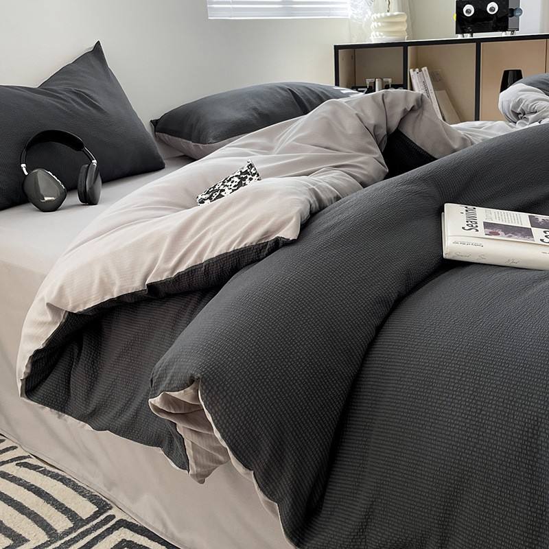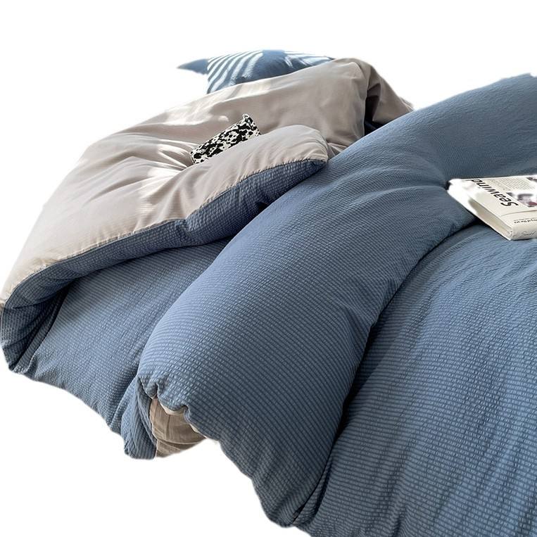Ensemble de quatre pièces à sauce à bulles de couleur unie housse de couette trois pièces pour ensemble de literie en drap de lit pour dortoir étudiant