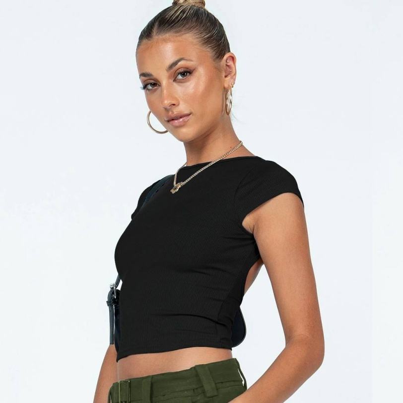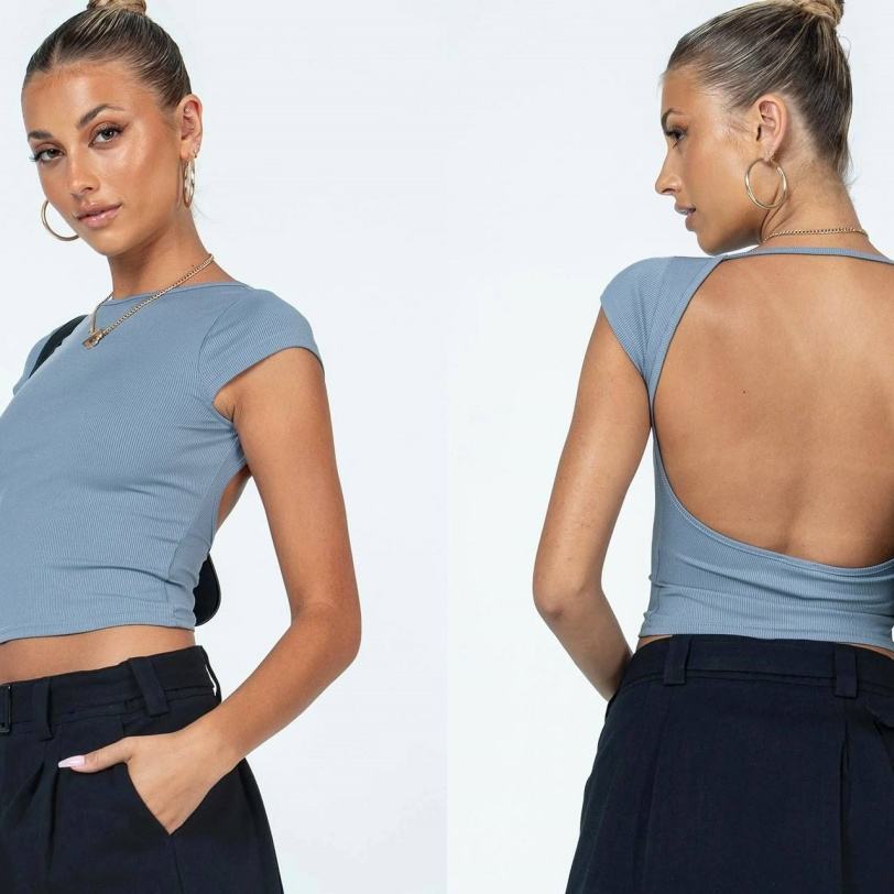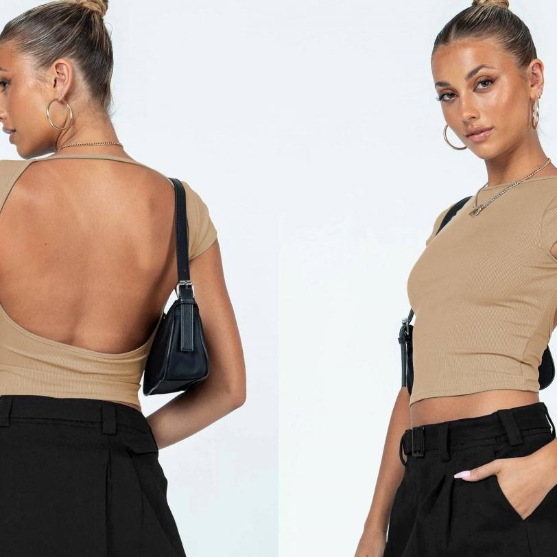 Top court sans manches en coton uni, style européen et américain, dos nu, t-shirt personnalisable