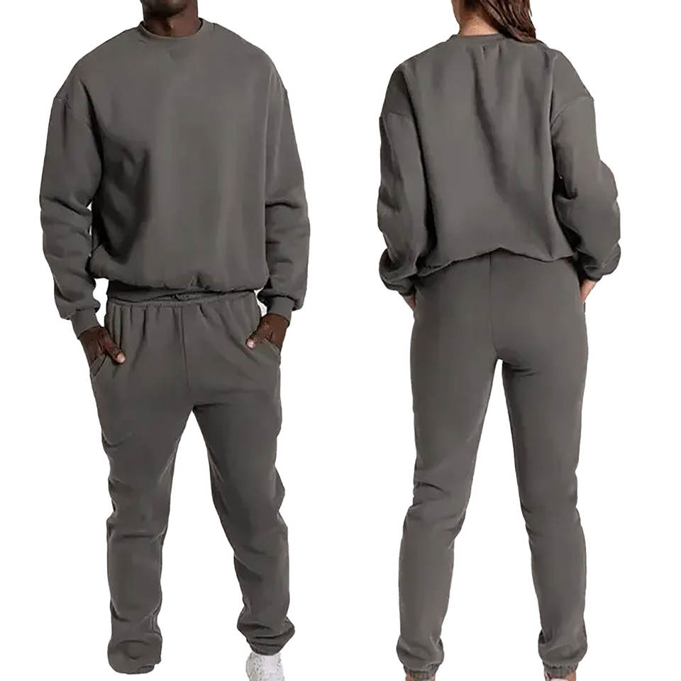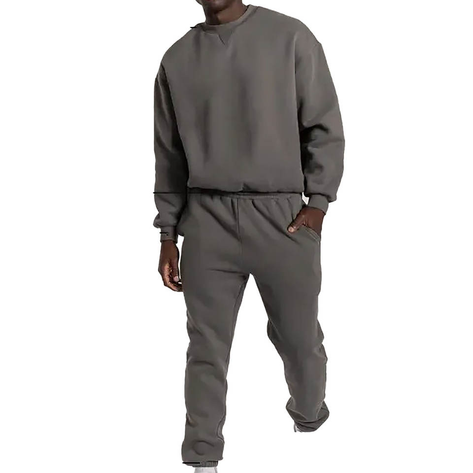 Combinaison à col rond unie avec poche sur la manche, style patch, tissu mi-lourd, survêtement d'hiver pour hommes, ensemble 2 pièces, écologique