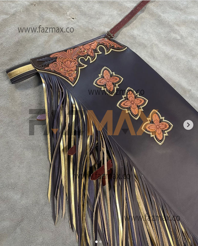 Pantalon en cuir de vachette couleur unie design personnalisé Western-Cowboy Chap-franges équitation cuir de vachette Tan-Brown pantalon moto Chaps