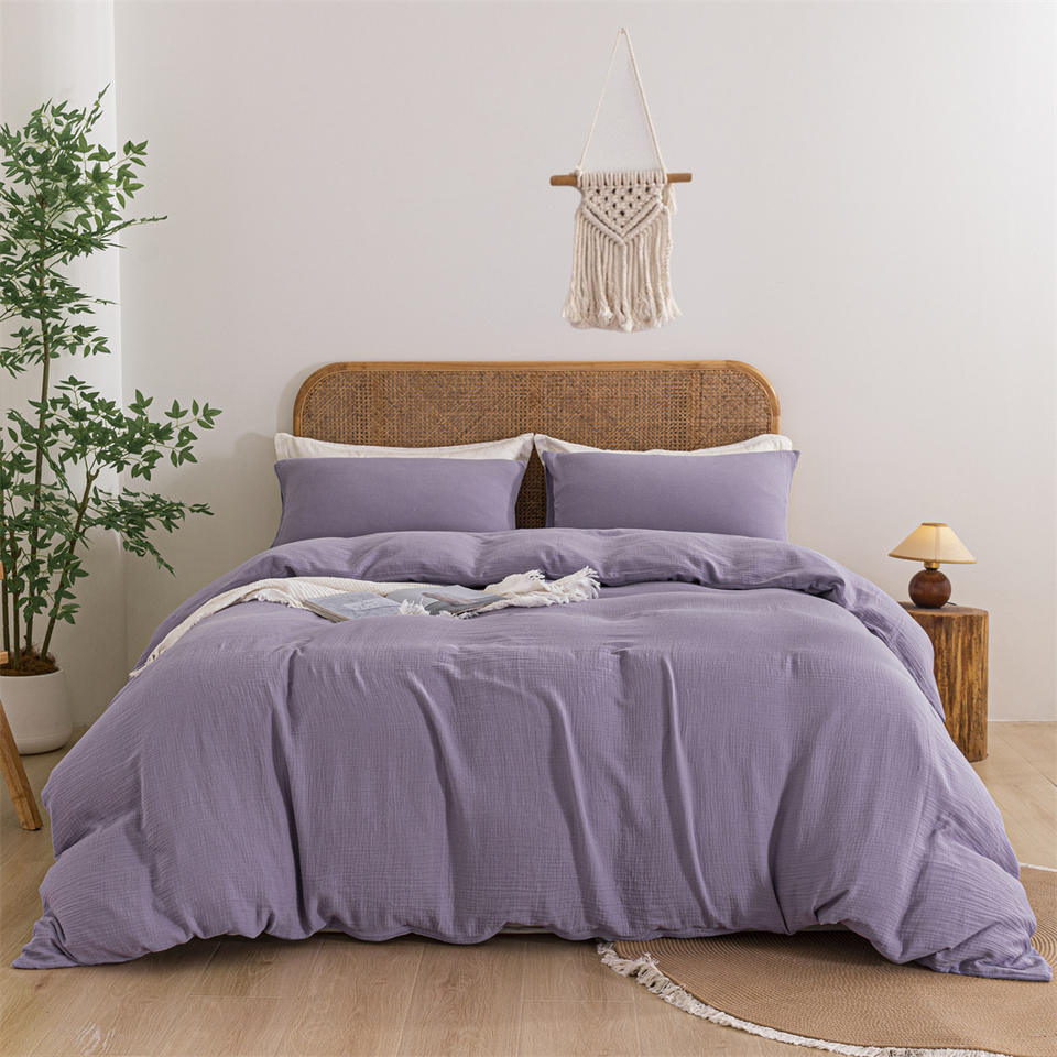 Housse de couette en gaze double couche en coton pur de couleur unie sur mesure, ensemble de literie 3 pièces, respirant, taies d'oreiller