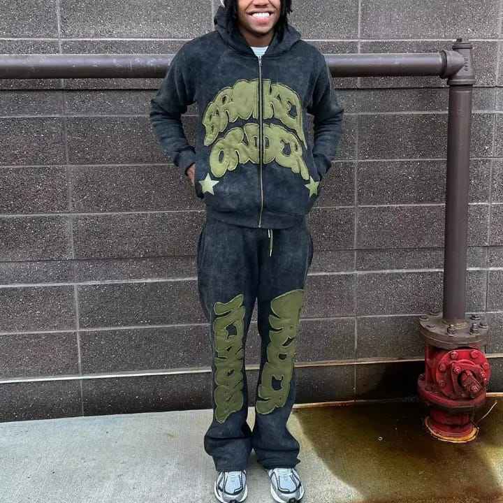 Ensemble deux pièces tendance en coton 100 % respirant et écologique, comprenant un sweat à capuche et un pantalon de jogging, idéal pour l'hiver et les activités décontractées en extérieur.