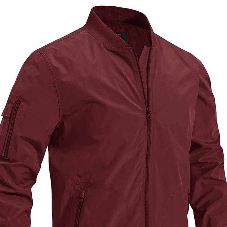 Blouson aviateur pour homme en couleur unie avec fermeture éclair intégrale, qualité supérieure, léger