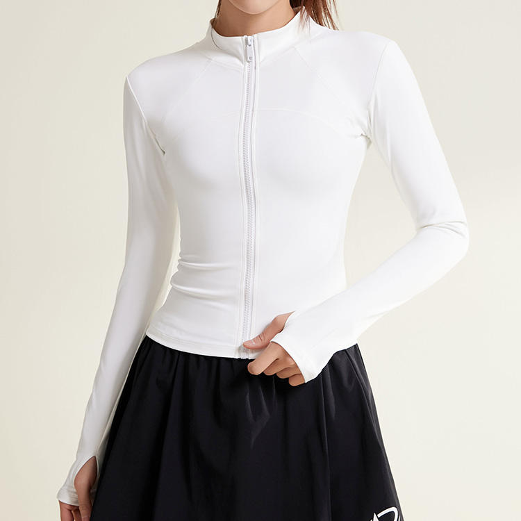 Veste de sport unie pour la gym et le yoga avec poches, veste de yoga blanche pour l'entraînement matinal, veste de yoga slim à séchage rapide
