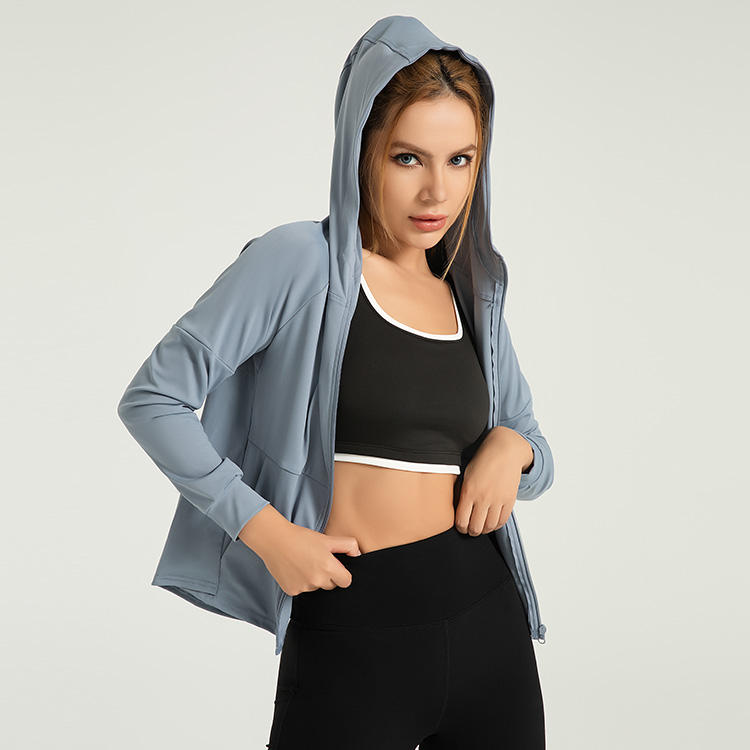 Veste de sport unie pour la gym et le yoga avec poches, veste de yoga blanche pour l'entraînement matinal, veste de yoga slim à séchage rapide