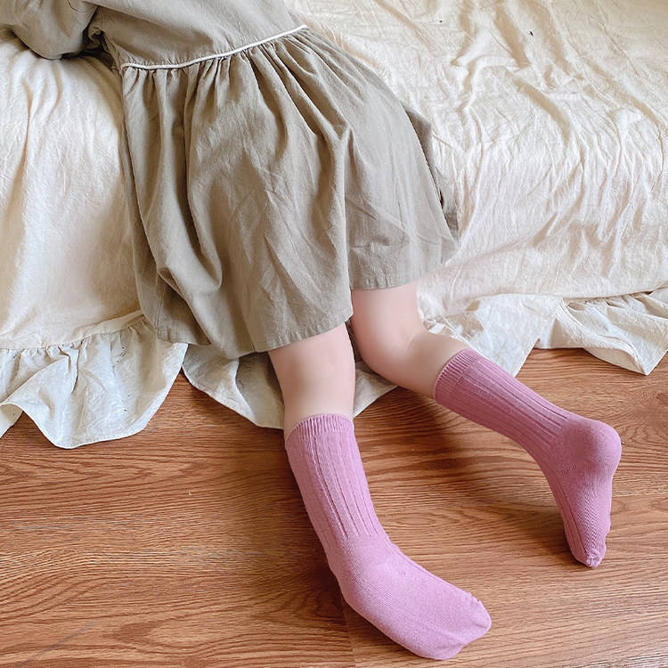 Couleur unie tricot qualité doux enfants bas bio coton peigné Double aiguilles bébé fille enfants enfants en Stocks chaussettes