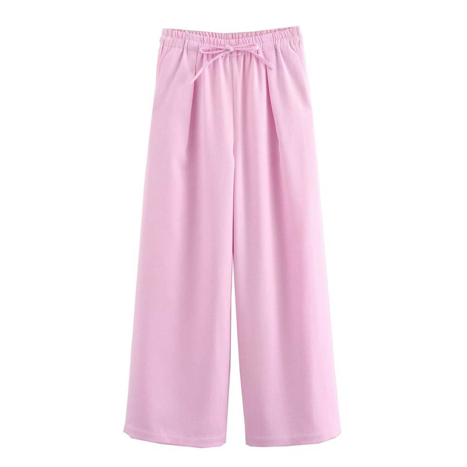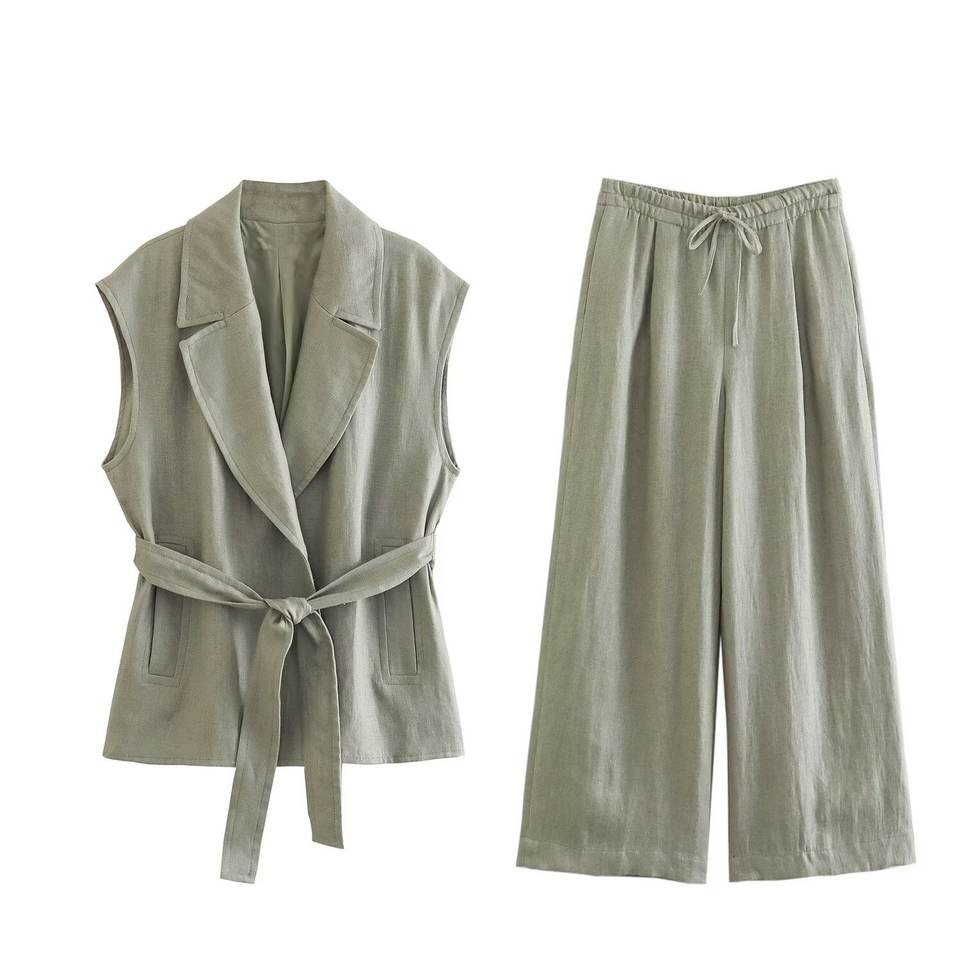 Keywords:Solid color linen waistcoat high waist wide leg pantsuit for women