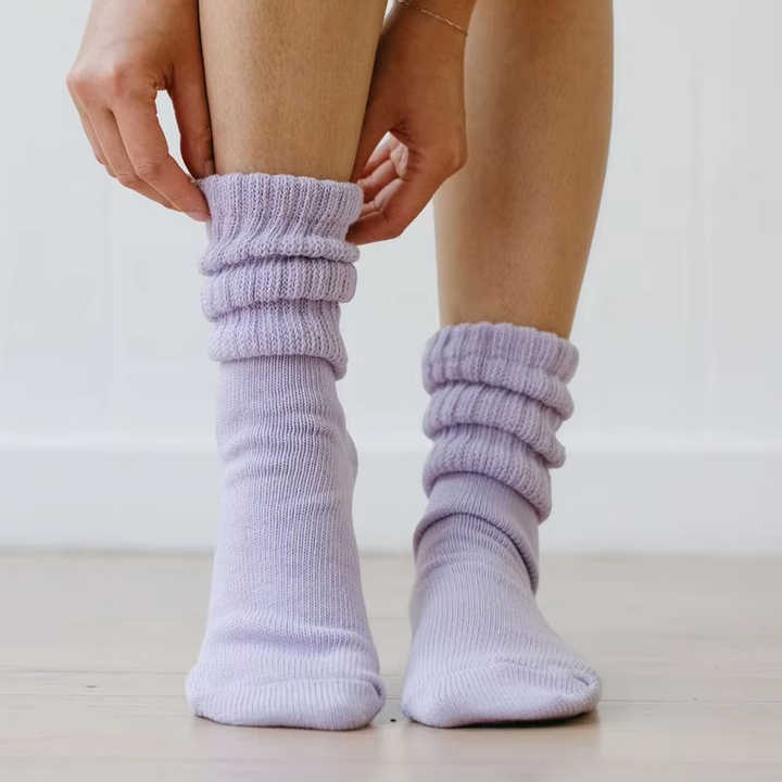 Chaussettes de yoga longues et amples de couleur unie, chaussettes de ballet populaires, chaussettes de Pilates, chaussettes de studio pour femmes avec poignées
