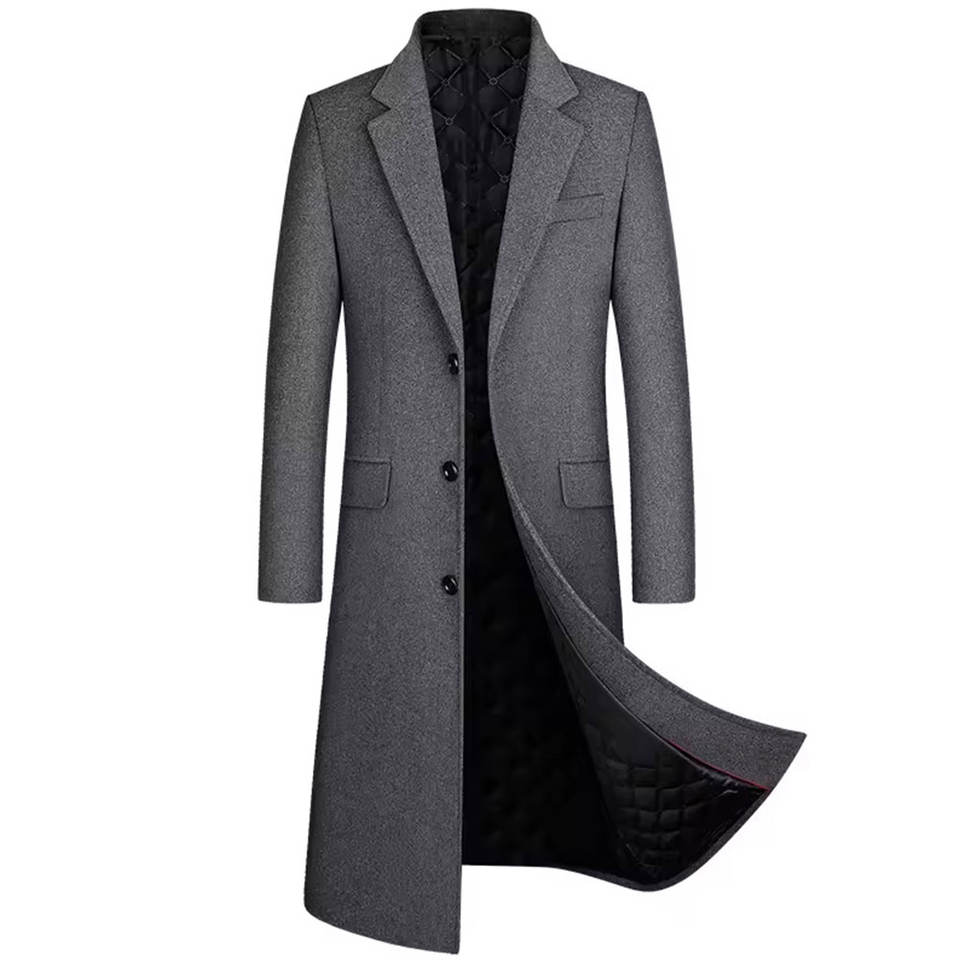 Manteau long en laine pour homme, couleur unie, élégant, style trench, chaud, tendance, épais, vêtement d'extérieur chaud