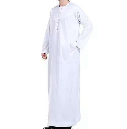 Robe Jubba pour homme, couleur unie, longue, style thobe musulman, pour la mosquée, le quotidien et l'Aïd.